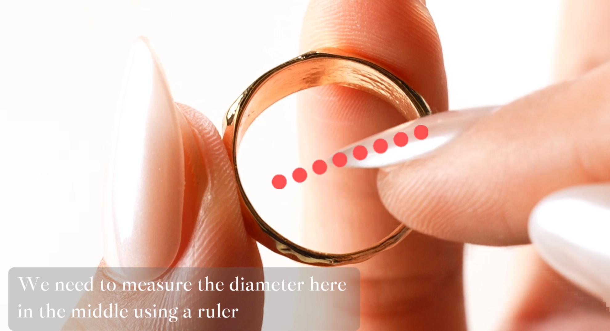 1. Use a ruler (in millimeters) to measure the inner diameter of the ring.